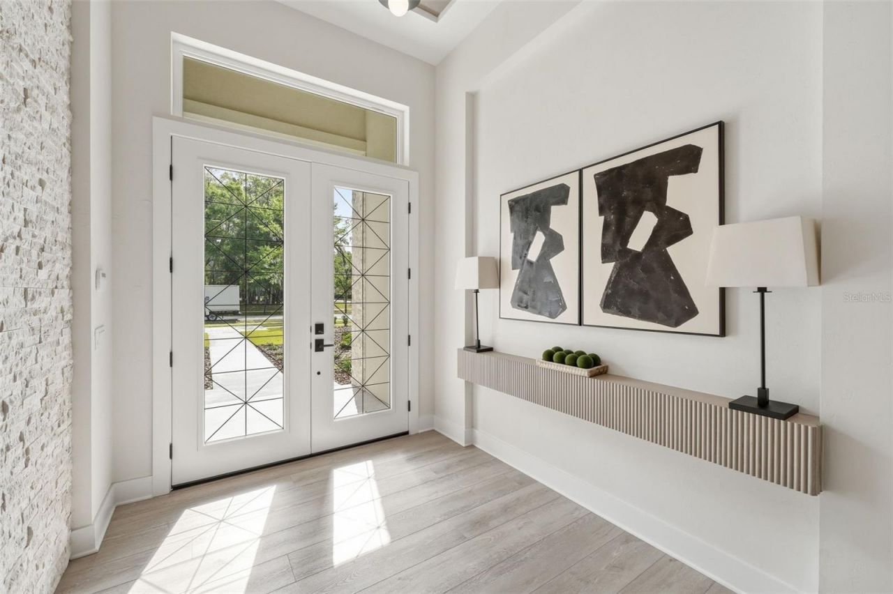 Pre-Construction. To be built. Back by popular demand, Warring Home's extremely well-received Canmore model, praised for its perfect floor plan, will be built in Flint Rock Agrihood, a luxury residential neighborhood!* The gourmet kitchen features an oversized refrigerator and separate freezer, a 48 dual-fuel professional range, and all the custom touches of a true 'cook's kitchen. The open floor plan boasts 12' ceilings in the Great Room, Dining Room, and Kitchen. The oversized primary suite has dual walk-in closets and a spa-like bathroom featuring a tub niche, oversized shower, and a makeup area with pull-out caddies on each side of the vanity seating space. The flex room opens to the rear lanai, making it the perfect space for game-day parties and family game nights. The expansive rear lanai offers a large sitting area overlooking the custom pool with a waterfall, as well as a dining area with a custom wood tray ceiling, summer kitchen, TV niche, and fireplace. The low-maintenance exterior is constructed of smooth Hardie board, complemented by a professionally designed landscape package. Additional features include double-paned insulated vinyl windows, gas tankless water heaters, and spray foam insulation in the attic. *Pending ARB Approval of plans.